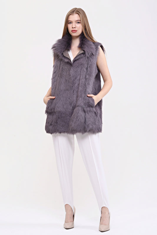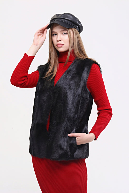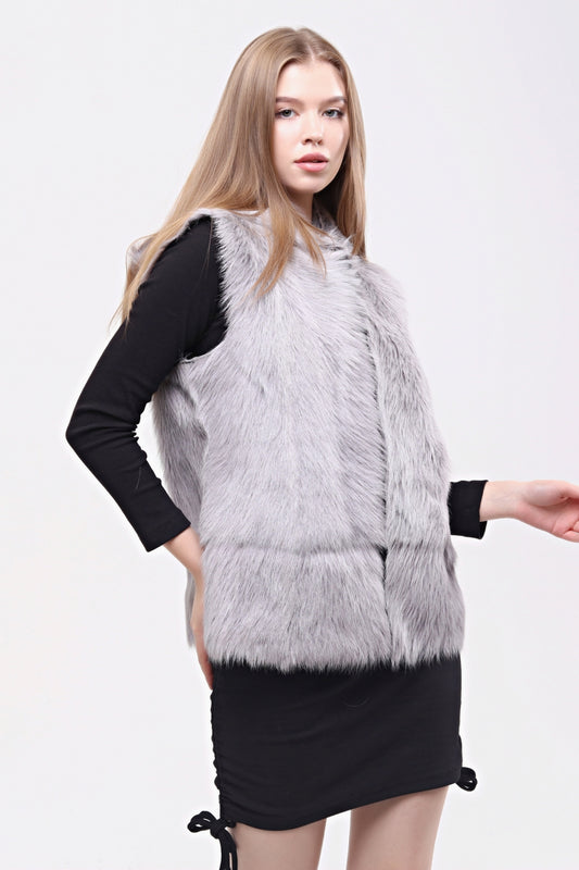 Crayz Mavi Eskitme Baskılı Kadın Deri Yelek