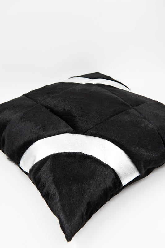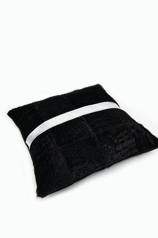 Hakiki Deri Siyah Lame Şeritli Kırlent