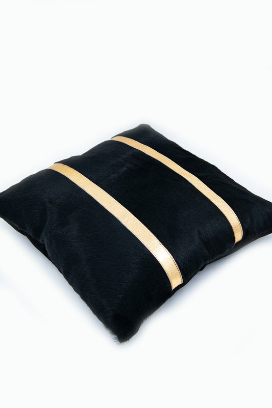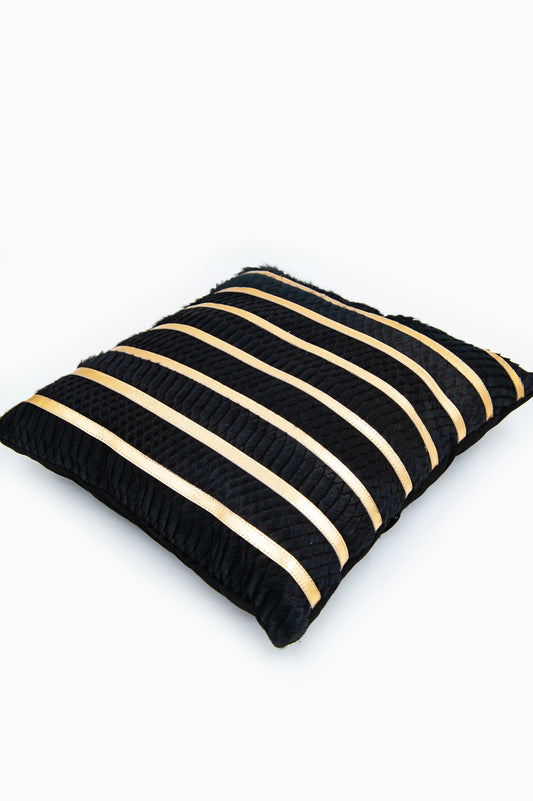 Hakiki Deri Siyah Dore Şeritli Kırlent