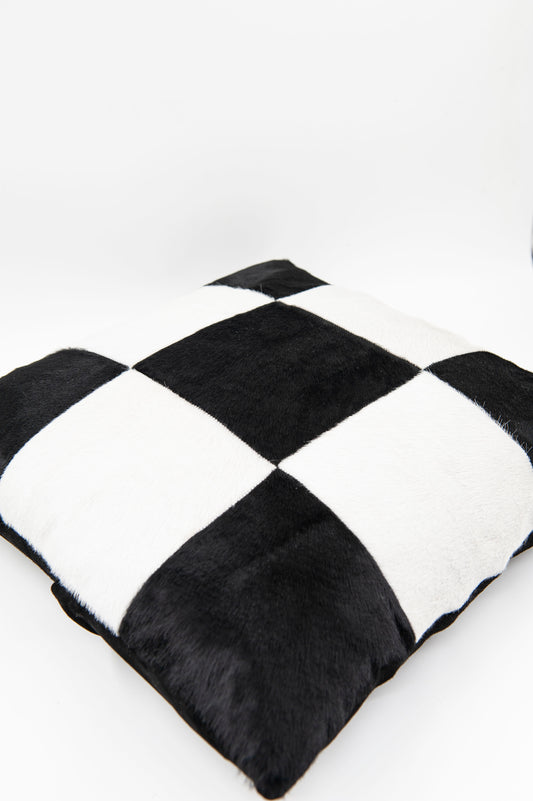 Hakiki Deri Siyah Beyaz Kareli Kırlent