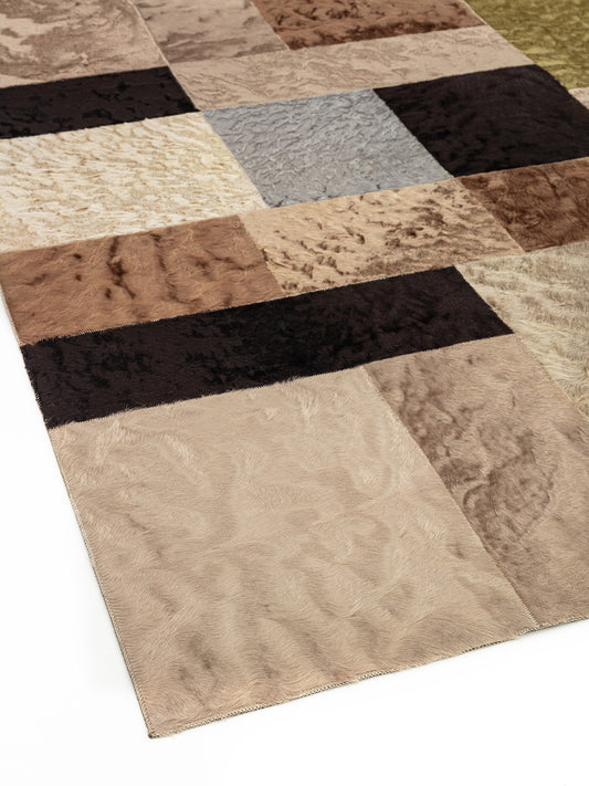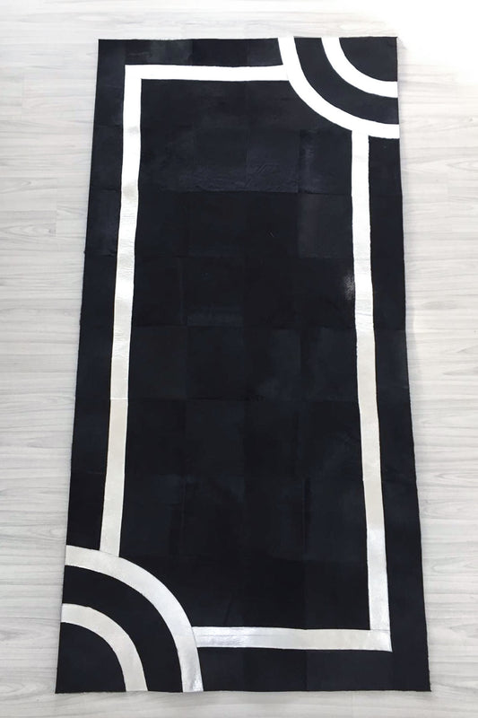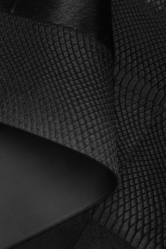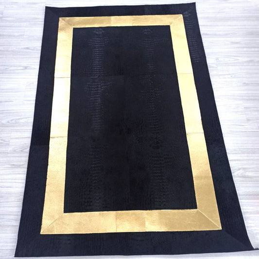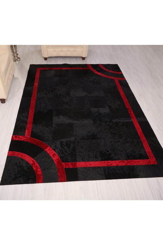 Rot gemusterter schwarzer Astragan-Lederteppich