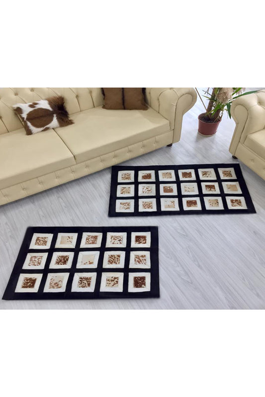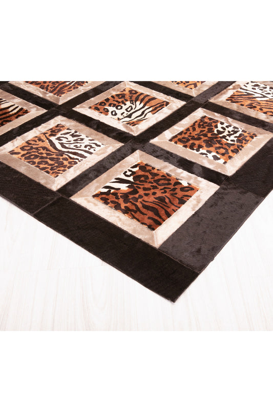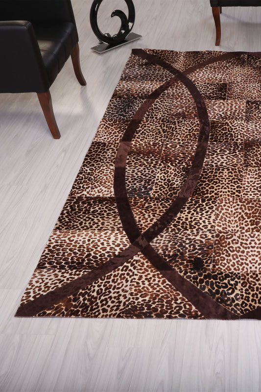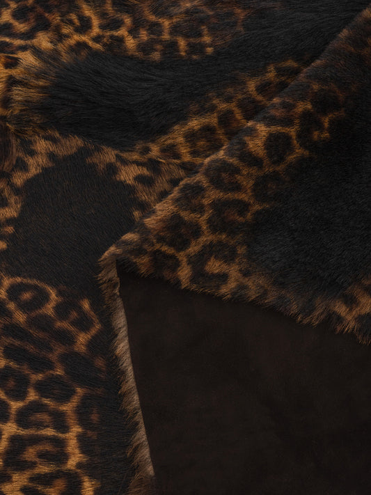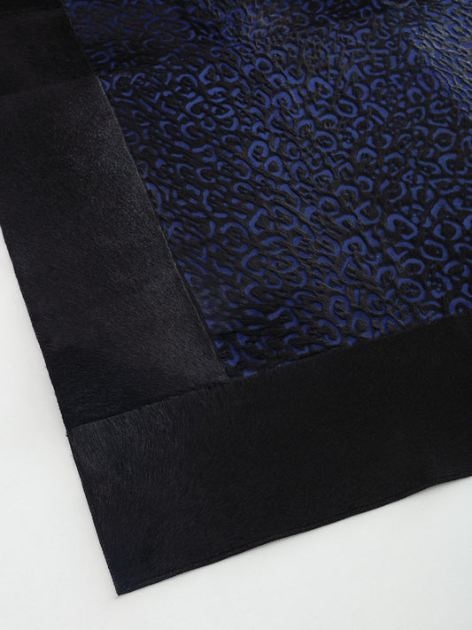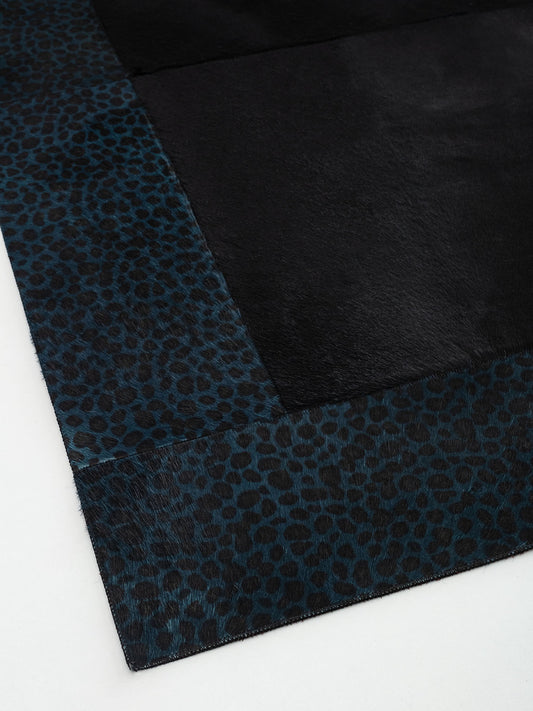 Türkisfarbener Lederteppich mit Leopardenmuster und schwarzem Leder