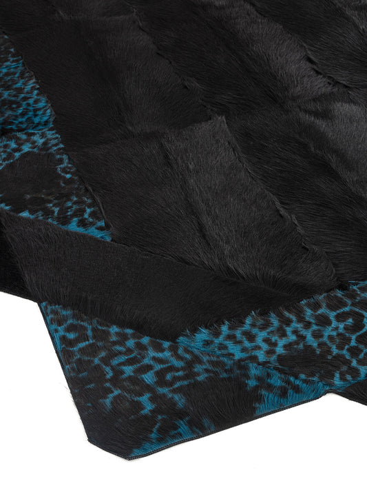 Türkisfarbener Leopard bedruckter schwarzer Lederteppich