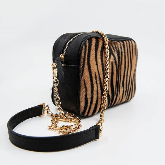 Açık Viski Zebra Baskılı Deri Omuz Çantası