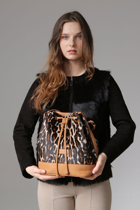 Taba Kadın Leopar Baskılı Torba Deri Çanta