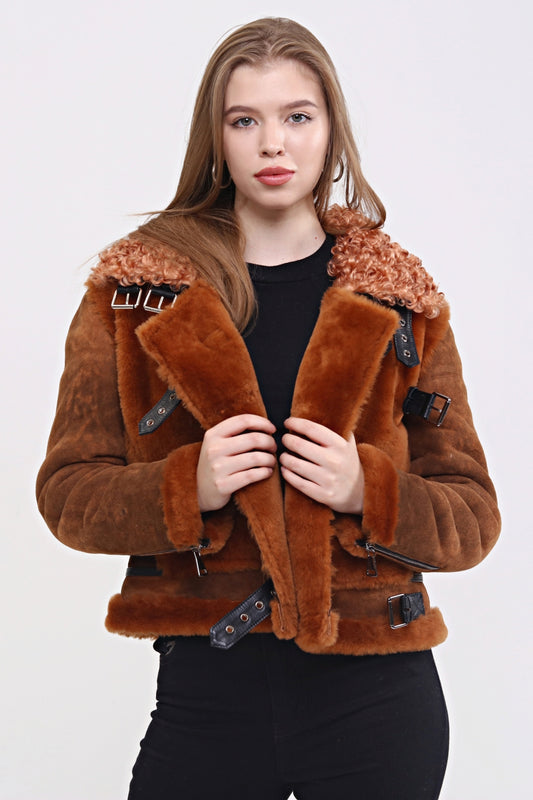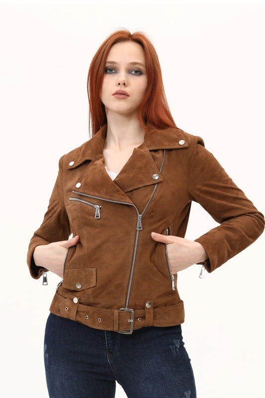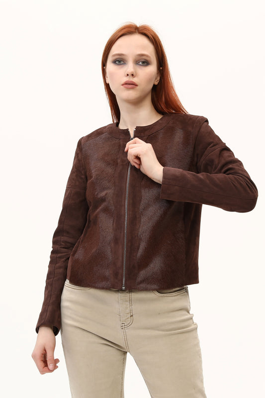 Kahve Kadın Deri Ceket (Çift Taraflı)