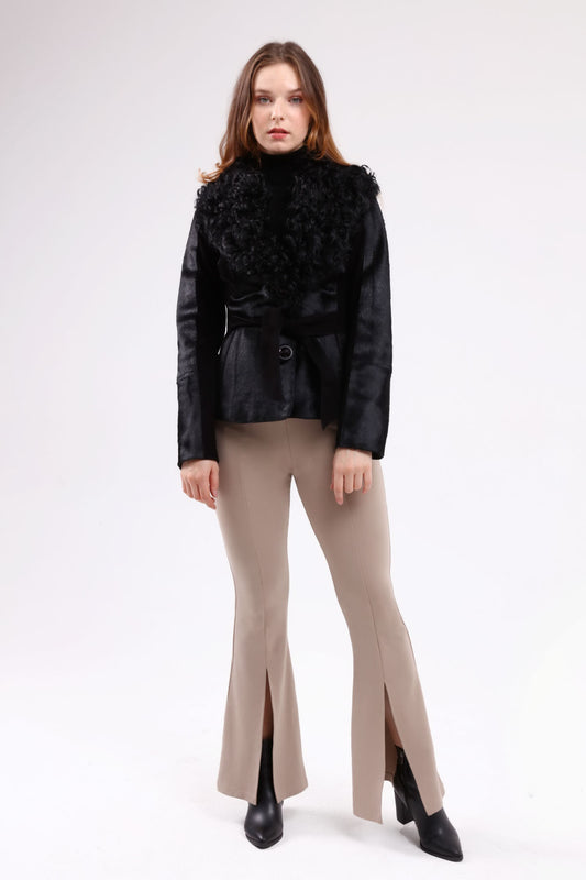 Siyah Kadın Cavallino Deri Ceket