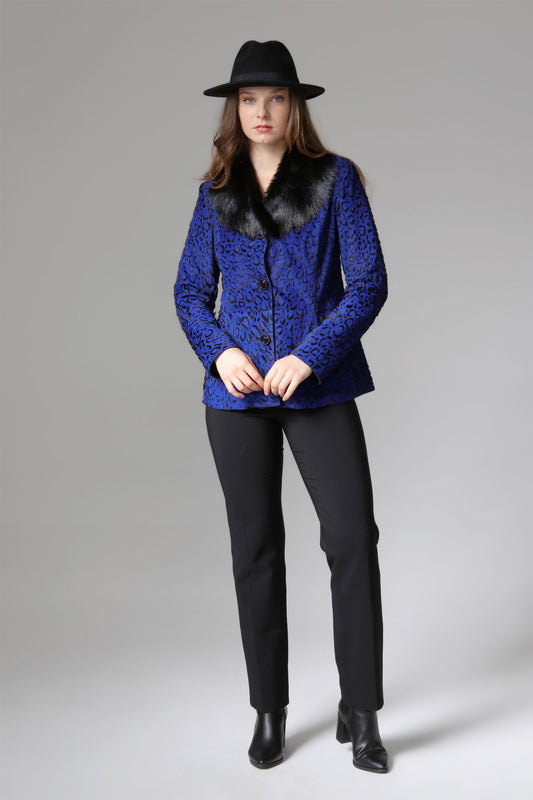 Saks Kadın Leopar Desenli Deri Ceket