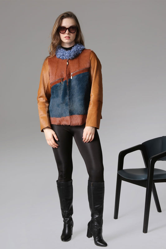 Renkli Kadın Deri Ceket